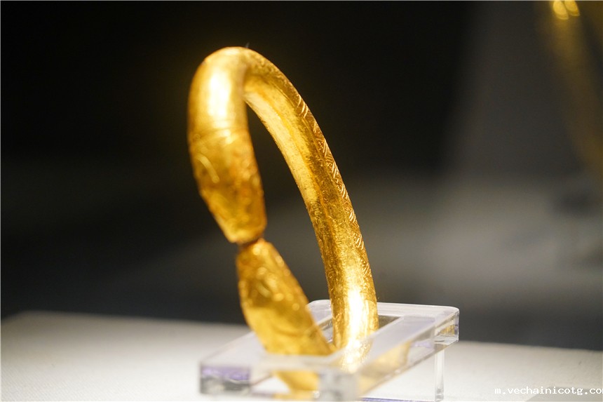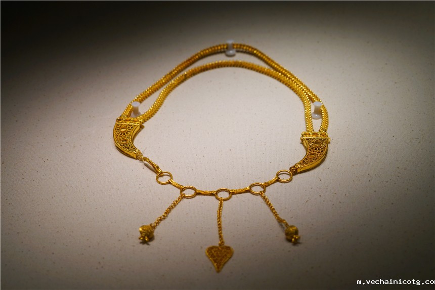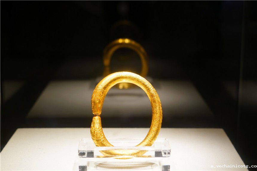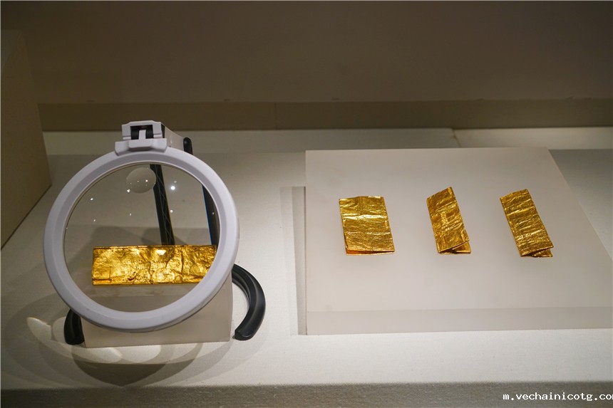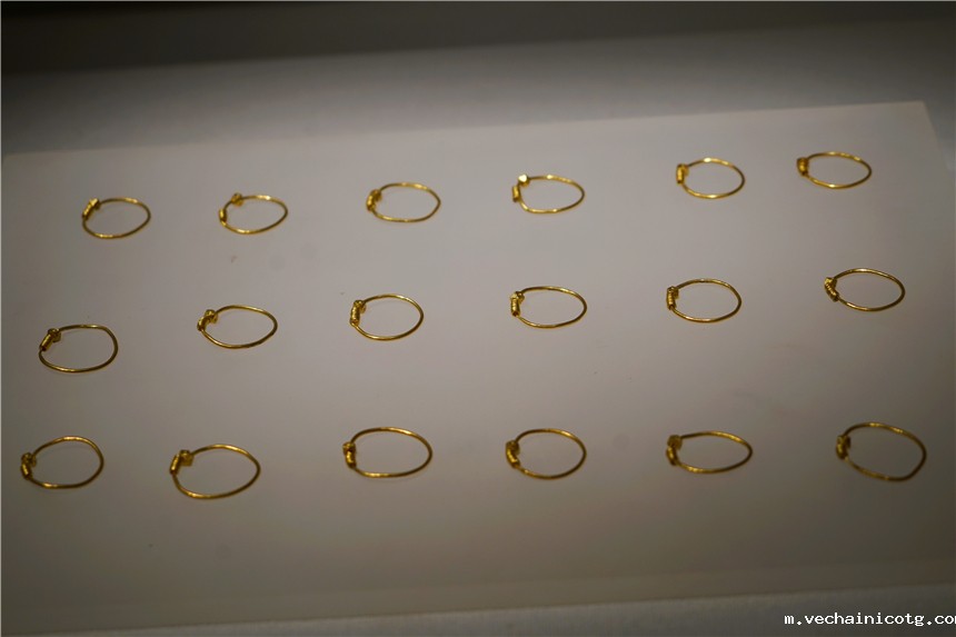 南海一号上面,除了大量的瓷器外,还发现了很多金饰品,这里专门有一个展区,很多饰品,我觉得即使放到现在,款式也十分新颖,最引人瞩目的就是一条金腰带,1987年试发掘出水。腰带全长1.72米。虽沉沦沧海近千年,仍金光闪耀。腰带工艺精良,带体呈麻花状,带扣装饰细腻浮点状纹饰,极具异域风情。