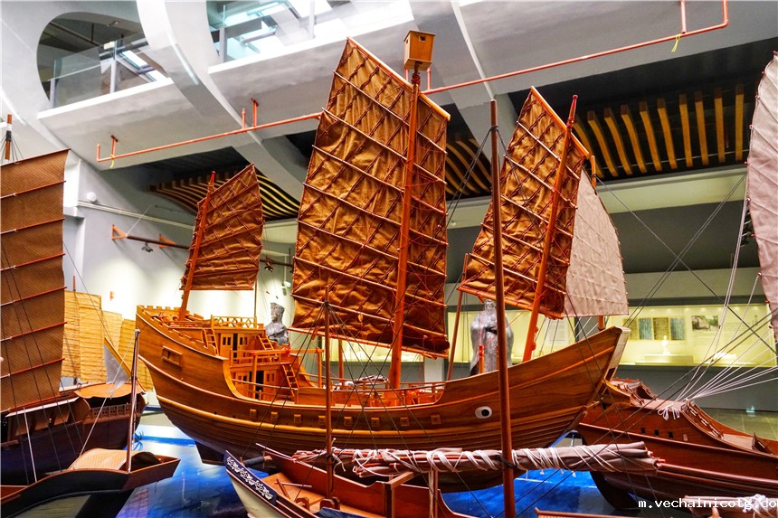 在博物馆内,还有很多船模,呈现了古代船型的不同特色,1987年在广东阳江海域发现,“南海一号”古船是尖头船,从发掘出来的文物来看,从船体造型该船始发港口可以肯定是来自福建的泉州,为何到了广东会发生沉船,原因尚不明确。