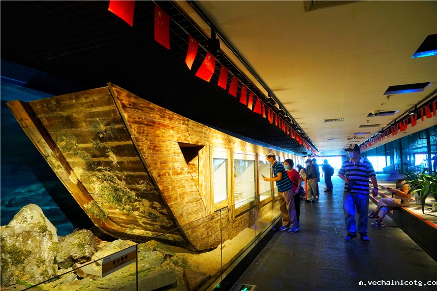 每到一个博物馆,我最感兴趣的就是这里的镇店之宝,当我问博物馆的解说员时,他告诉我,这里的镇馆之宝就是南海一号巨大的船体,这艘在海底沉默了八百年的大船,不仅带来了18万件文物,也有很多谜团等着我们去发现和揭开。