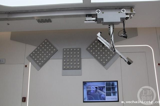 挂在屋顶的一个设备正在沿着轨道移动,这就是在曾家岩大桥上即将投用的桥梁巡检机器人。它可对钢桥螺栓进行在线、连续自主巡检,有效代替了人工日常巡查,并对螺栓松动、脱落进行预警。该设备属国内首创。